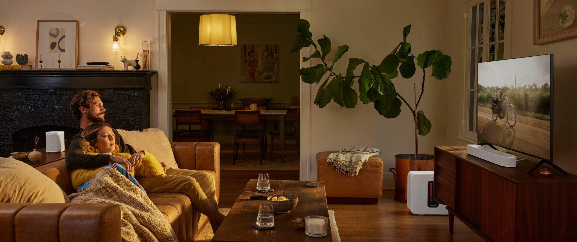 All Sonos speakers and components connect over WiFi so you can build the system you want. Put on a podcast in the bedroom while someone else watches TV in the living room, or group all your speakers to play music in sync.