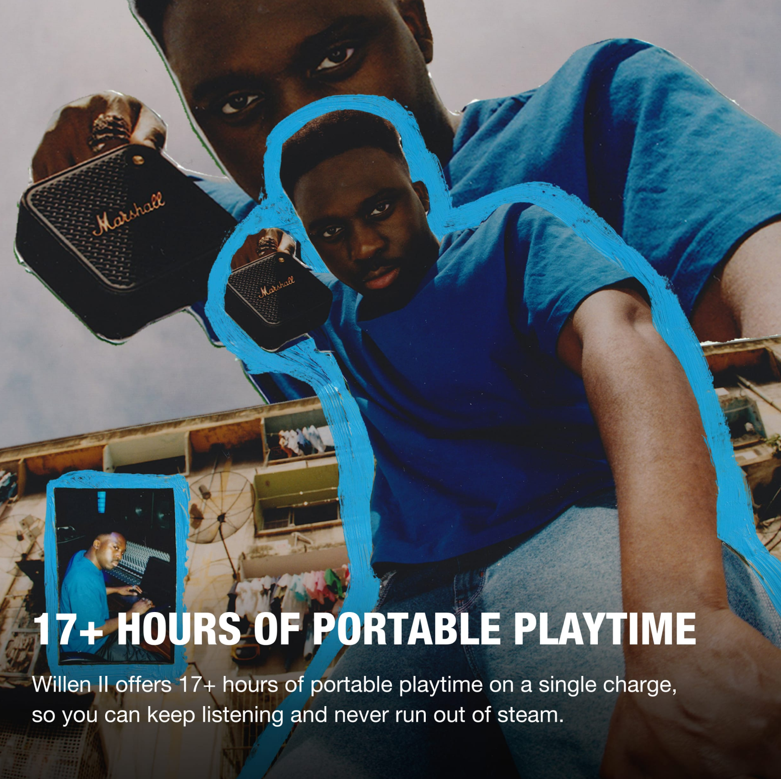 Marshall’s on the road spirit lives on in our Willen II speaker, boasting a rugged design that can battle dust and rain.