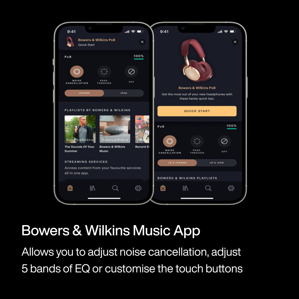 The Bowers & Wilkins Music app provides industry-first headphone music streaming, plus simple setup and control that makes Pi8 smart, intuitive, and easy to use.