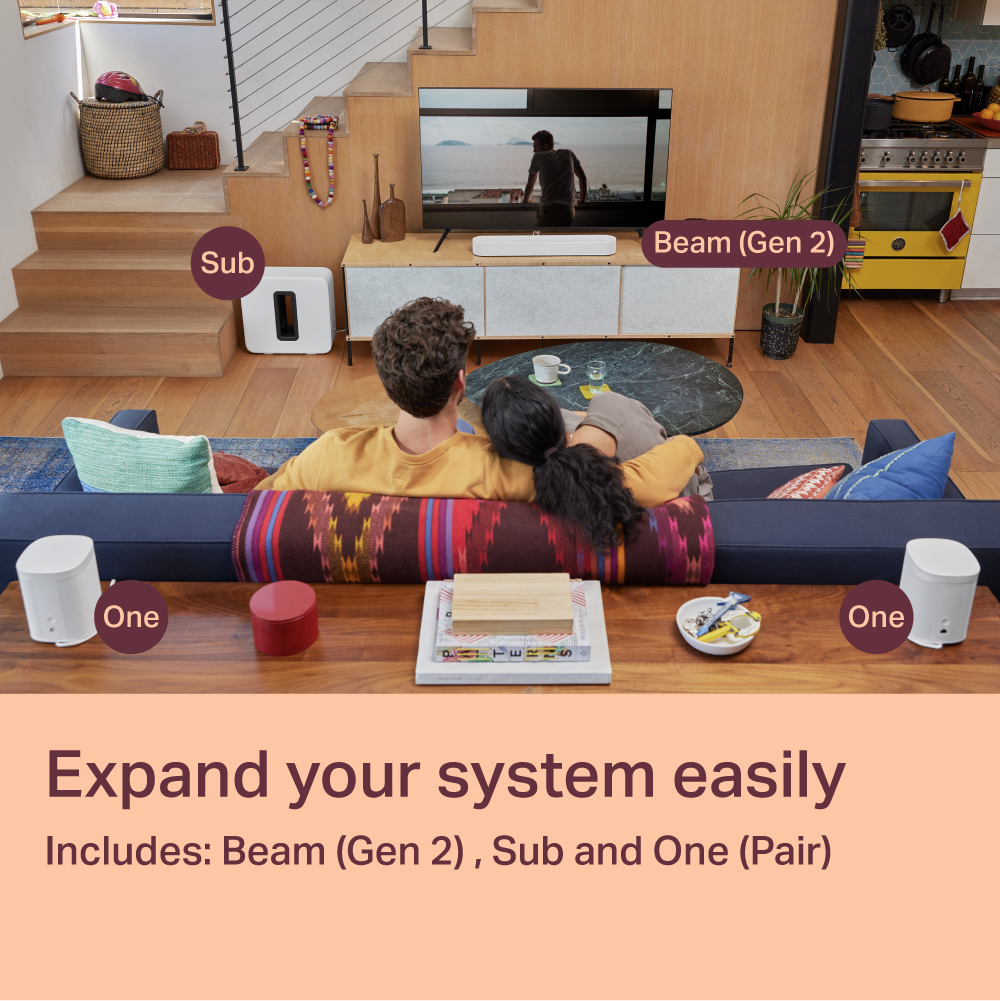 Simply add a Sub and a pair of surround speakers for a more immersive home theatre experience - all connected wirelessly.